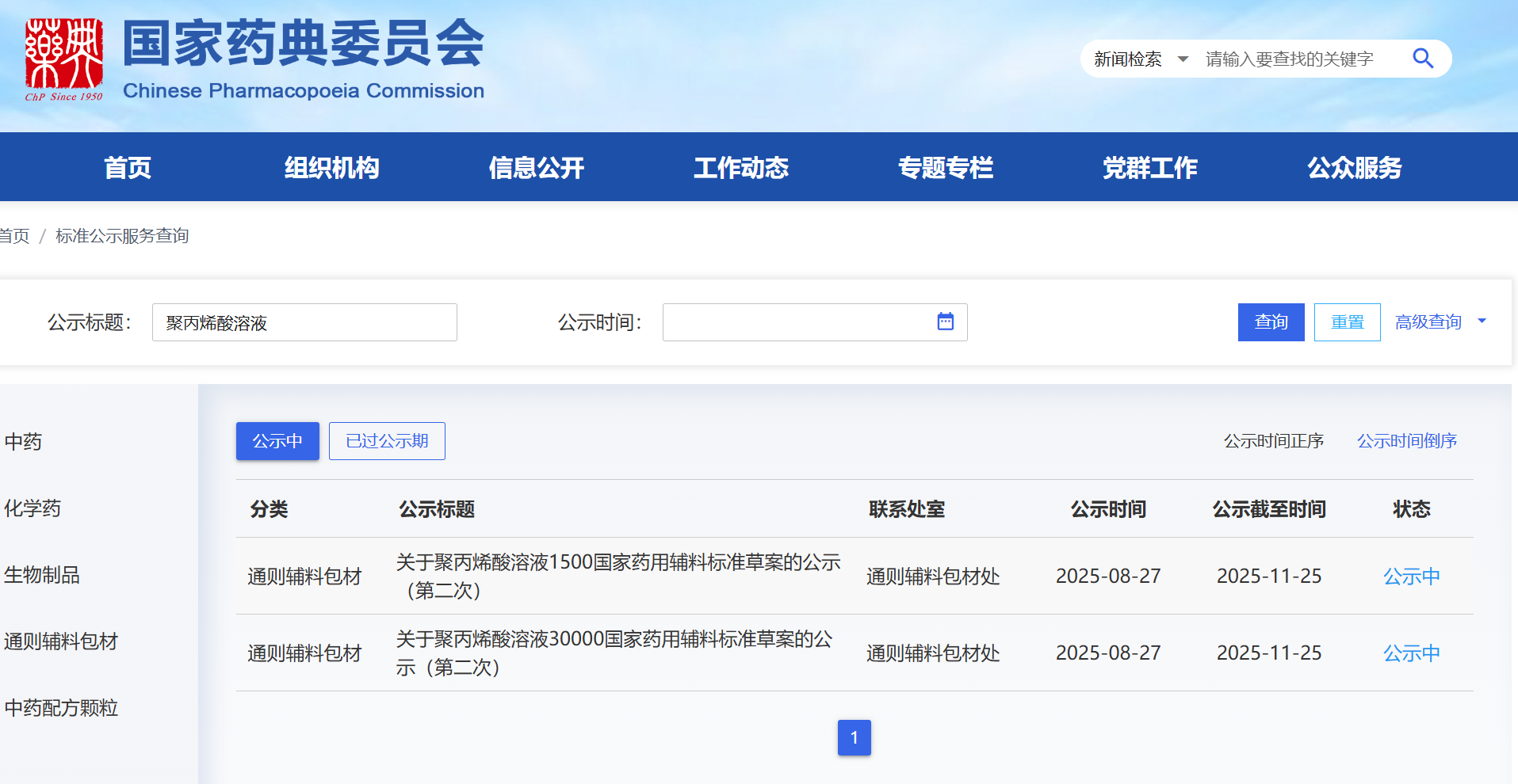 新聞:聚丙烯酸溶液國家藥用輔料標準草案公示