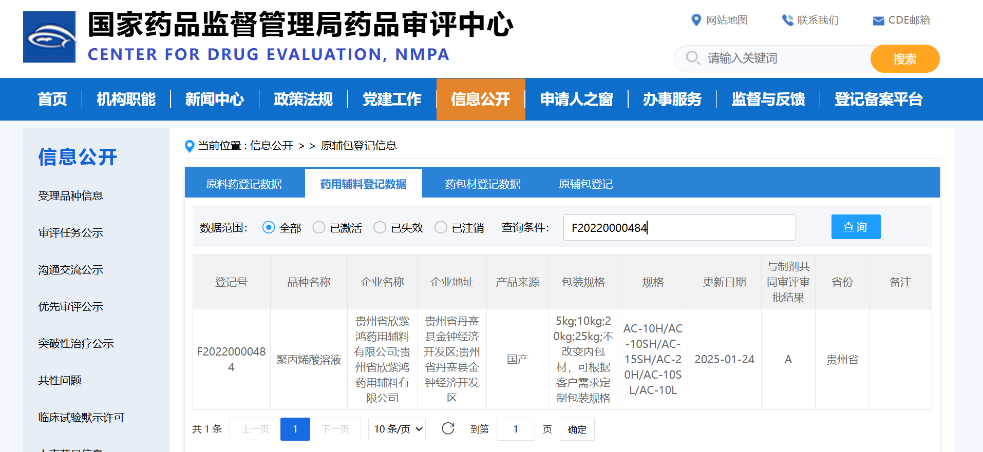 聚丙烯酸溶液(登記號F20220000484)通過關聯審評